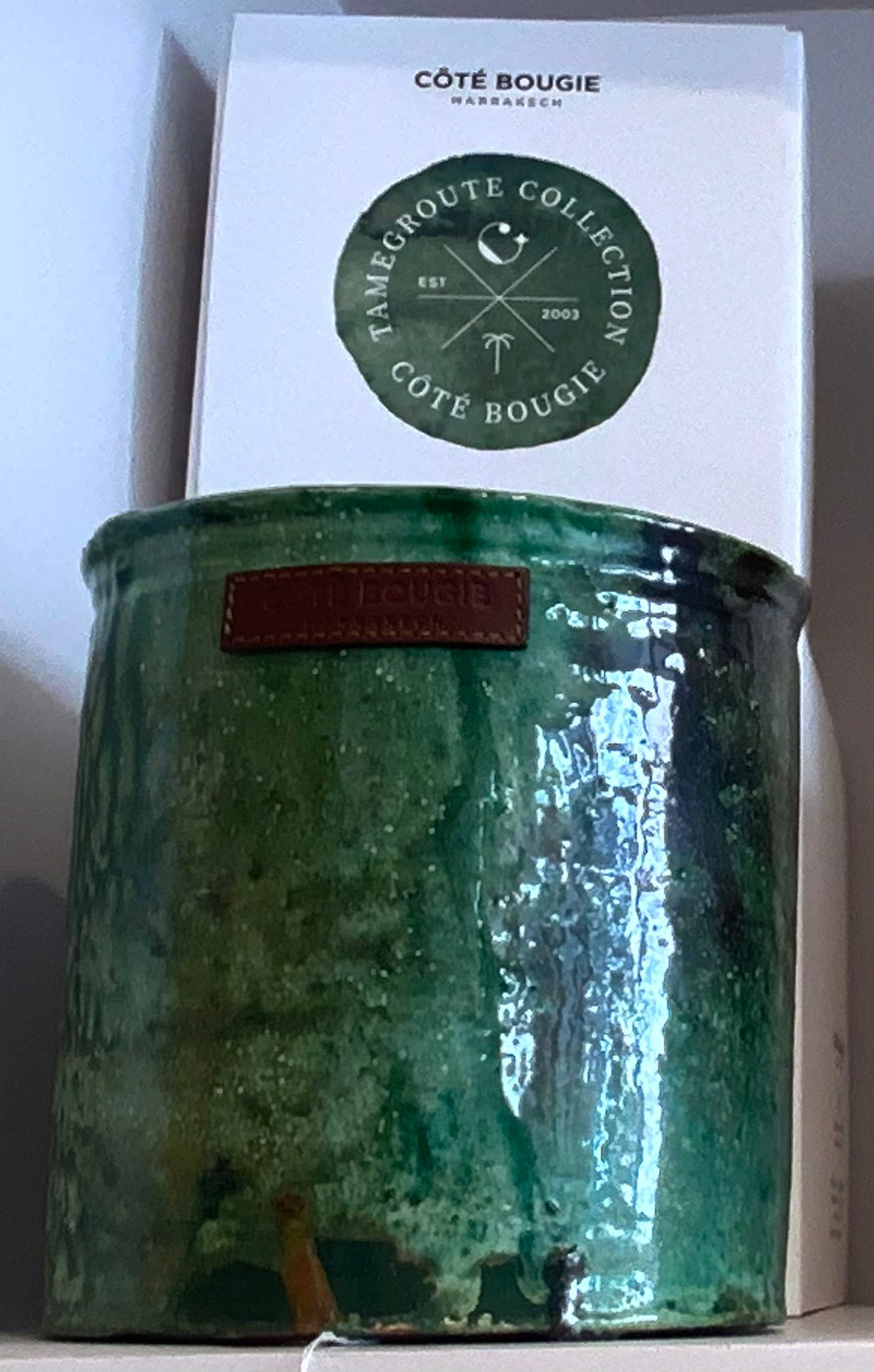 La Bougie Tamegroute Verte célèbre l’héritage artisanal du sud marocain. Les irrégularités visibles sur le pot parfois perçues comme des cassures sont en réalité le témoignage d’une véritable poterie de Tamegroute, façonnée et émaillée à la main, puis cuite dans des fours ancestraux. Chaque pièce est donc unique, marquée par l’histoire et le savoir-faire des artisans.