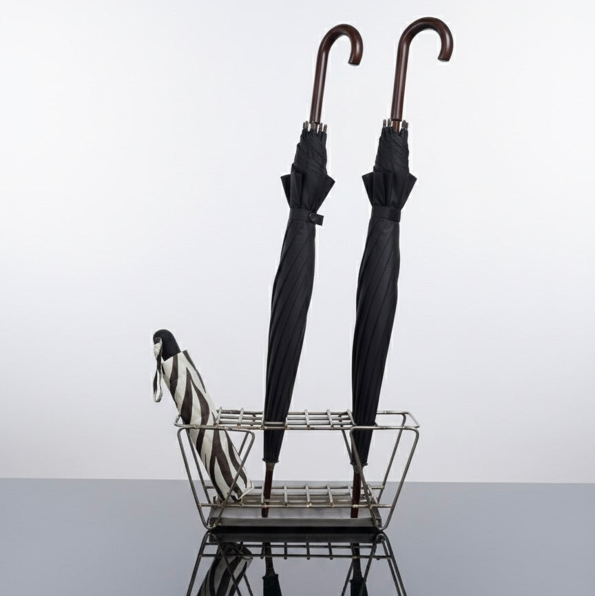 Le Porte-parapluie est fabriqué en acier inoxydable et présente une structure ouverte et légère, alliant fonctionnalité et design épuré. Idéal pour l’entrée de la maison, les bureaux ou les espaces partagés, il permet de ranger les parapluies tout en les maintenant au sec, apportant une touche utilitaire et raffinée.