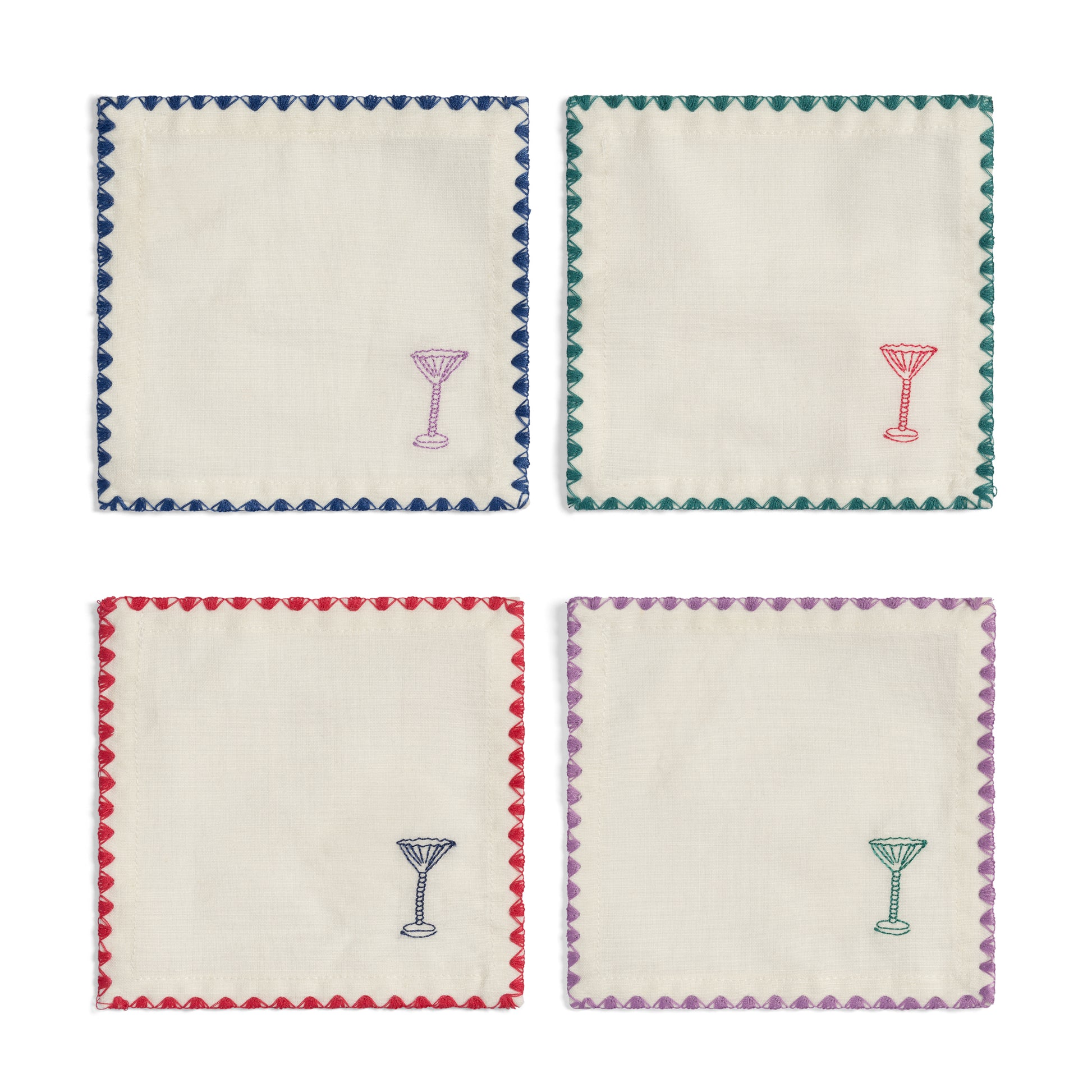 Les serviettes à cocktail zigzag sont fabriquées en 100 % coton et ornées de broderies colorées qui ajoutent une touche charmante à votre décoration de table. Associez-les aux élégants verres à cocktail coupe perle pour une présentation raffinée et complète de vos apéritifs.